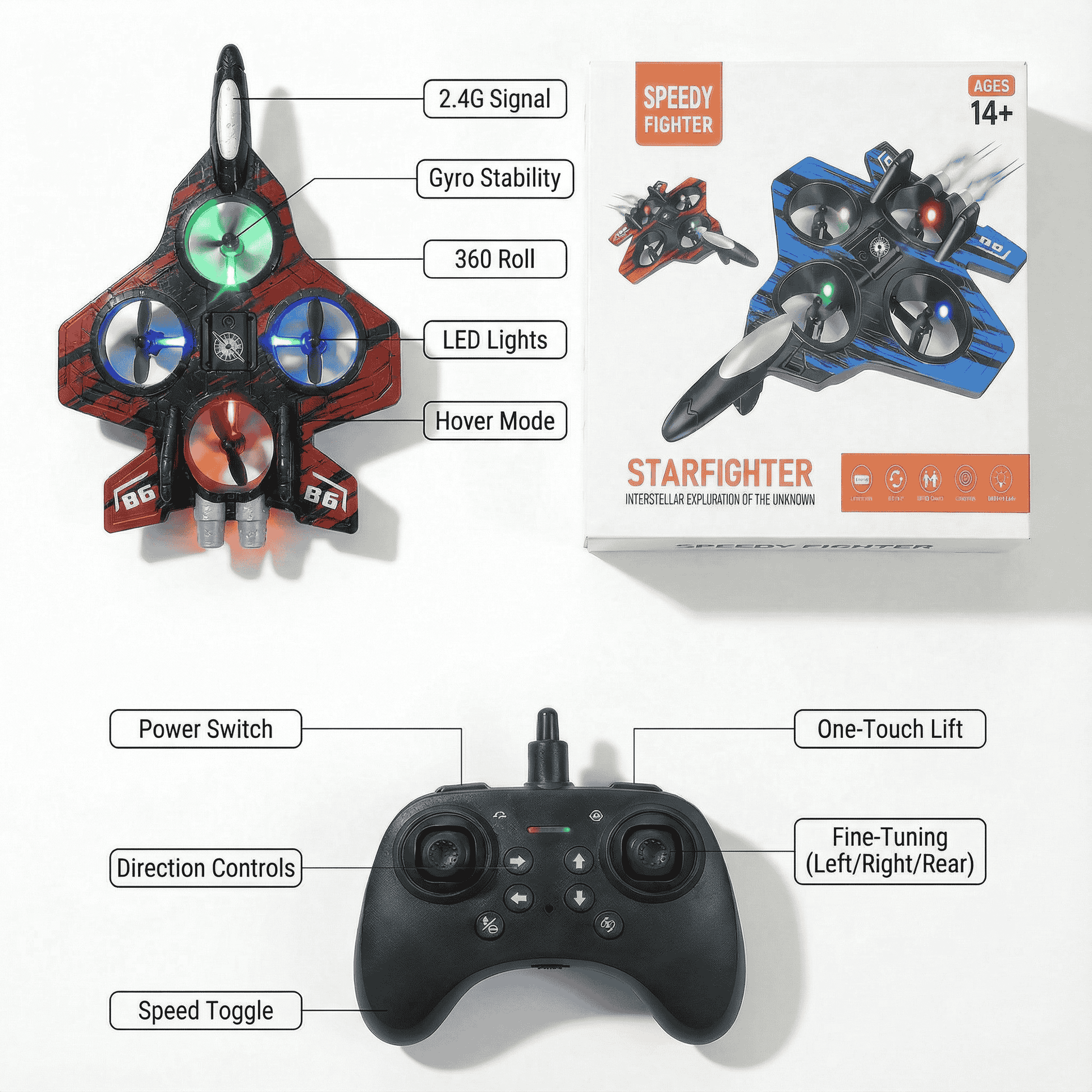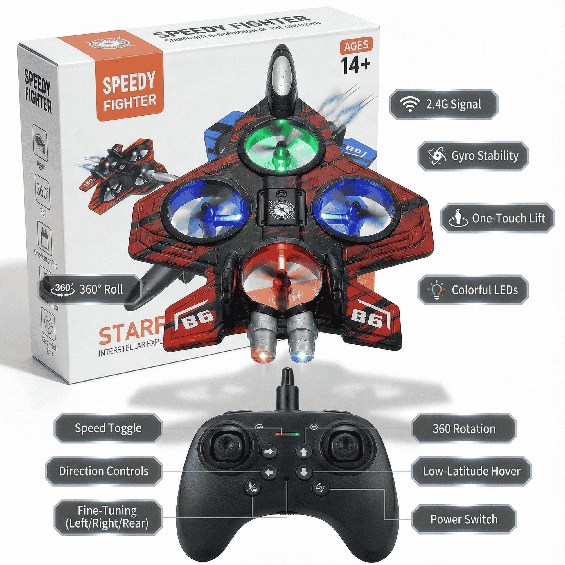 Speedy Fighter Drone - 2.4G Stunt & Hover Quadcopter for Kids