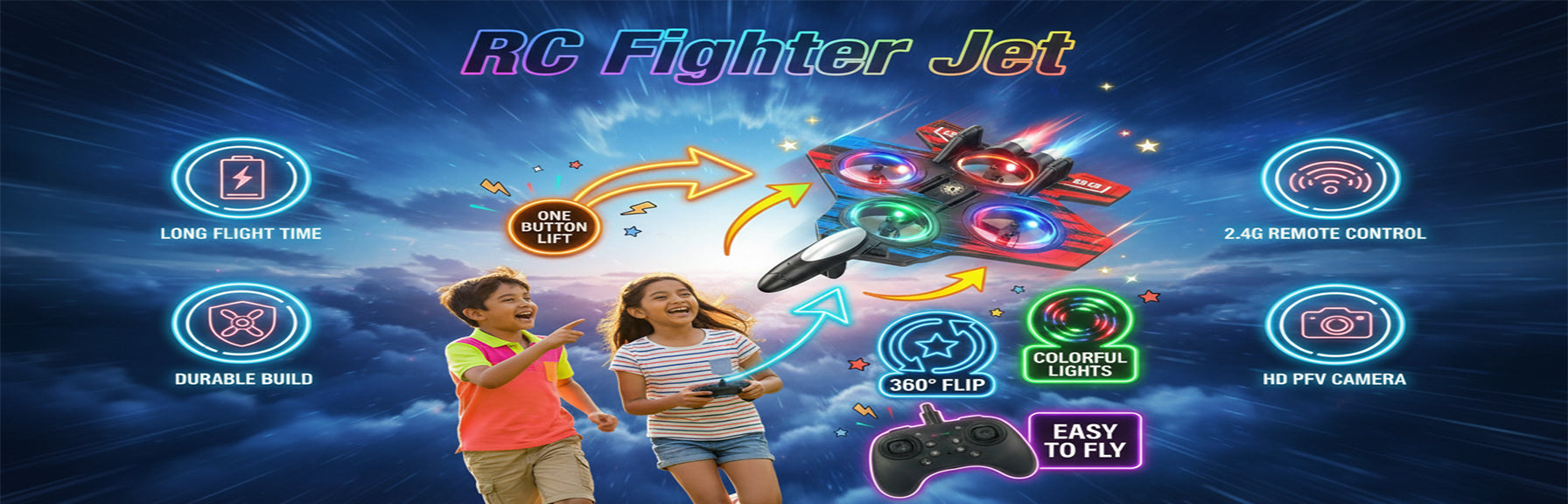 This high-speed fighter drone gives kids thrilling, hands-on fun. No apps. No screens. Just real flying, real stunts, and non-stop excitement.